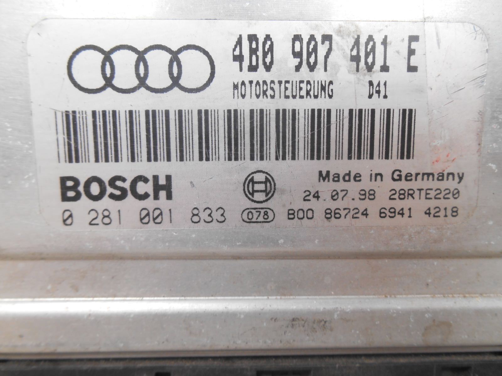 Centralina Motore Audi A6 2.5 TDi 1998 4B0907401E 0281001833
