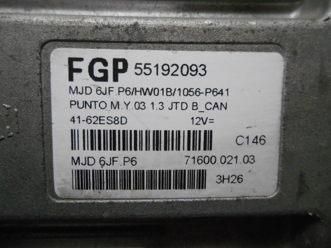 - centralina motore: 55192093, MJD6JF.P3