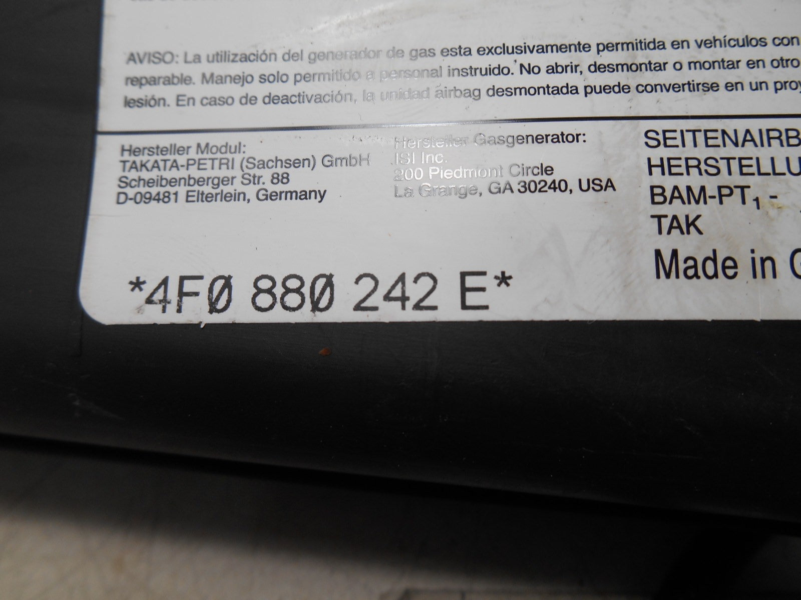 Airbag Laterale Sedile Destro Audi A6 C6 2006 4F0880242E