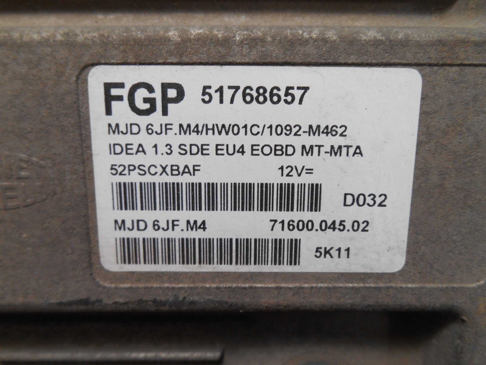 - Centralina Motore: 51768657, MJD6JFM4