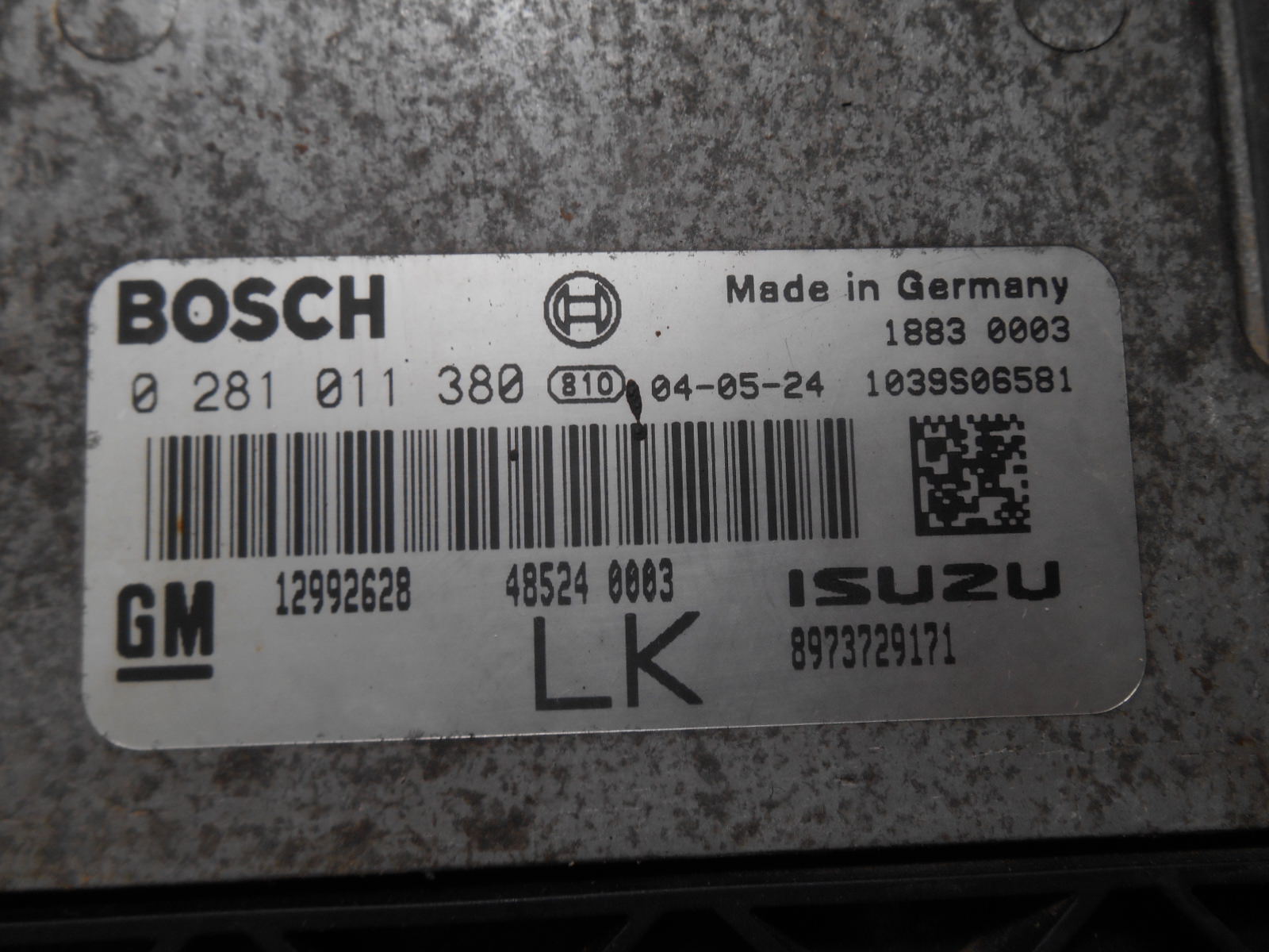 - Centralina motore: 0281011380, 12992628, 8973729171